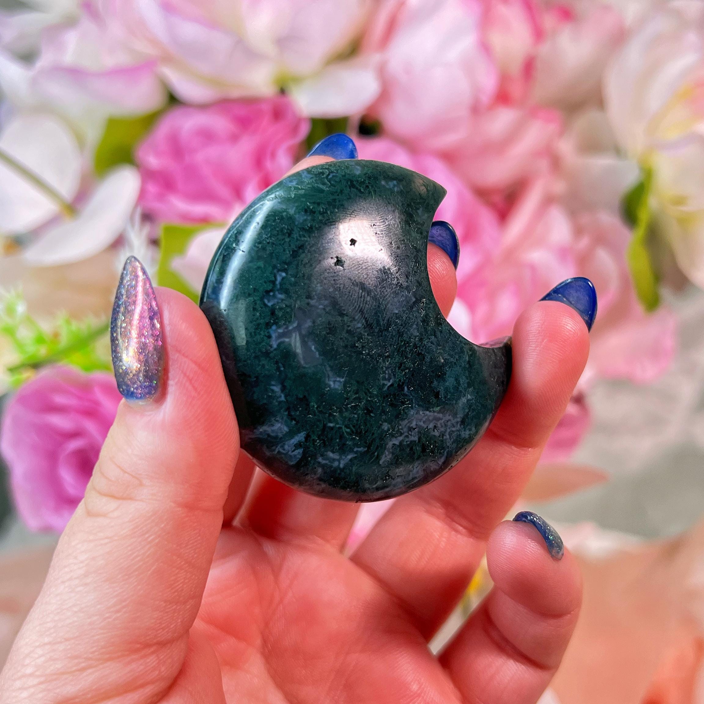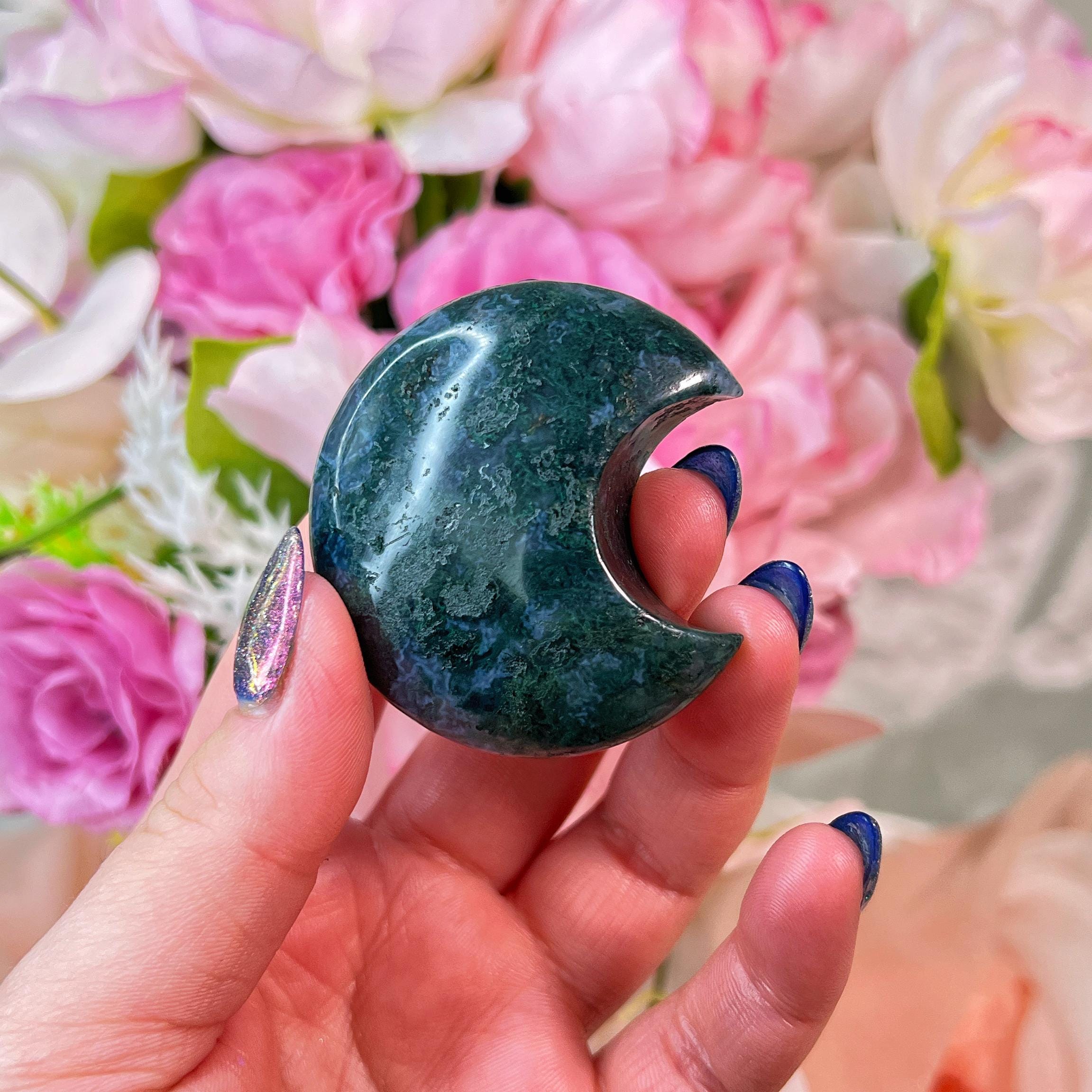 moss agate 💚 encourages calm, tranquility, and emotional balance - attracts abundance in wealth and self-esteem - brings movement after a time of stagnation - helps with manifestation and goal achievement