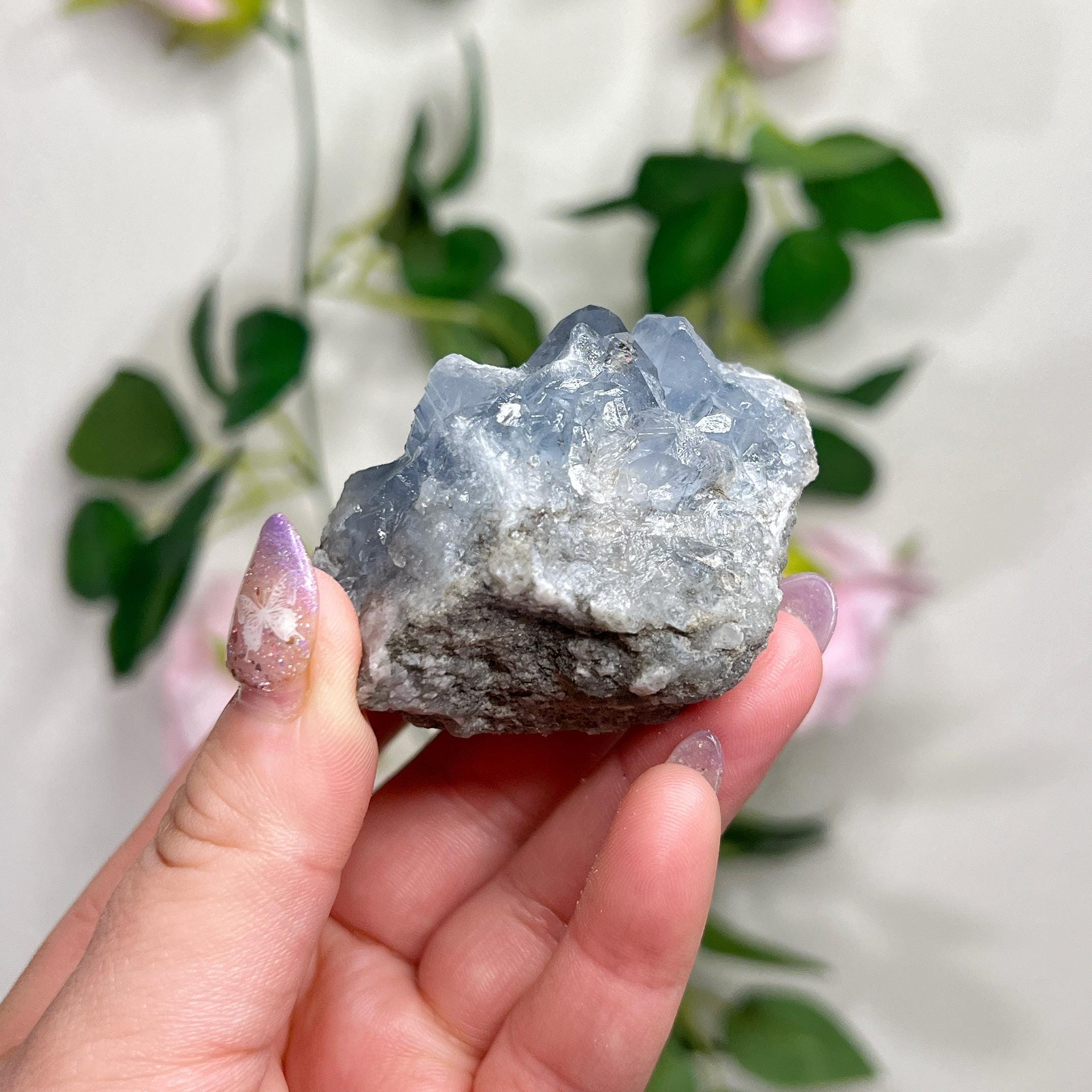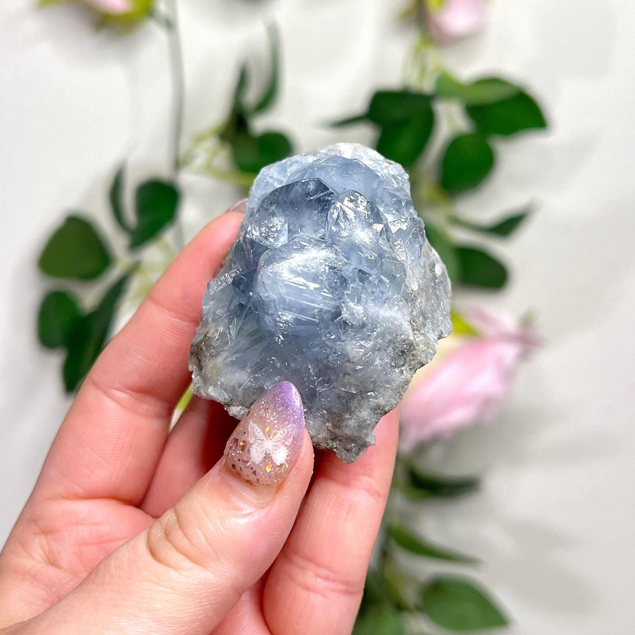 celestite 🫐 improves spirituality and spiritual awareness - dispels fear, anger, stress, and anxiety - brings tranquility, harmony, mental clarity, inner peace, and balance - helps to fall and stay asleep - prevents nightmares