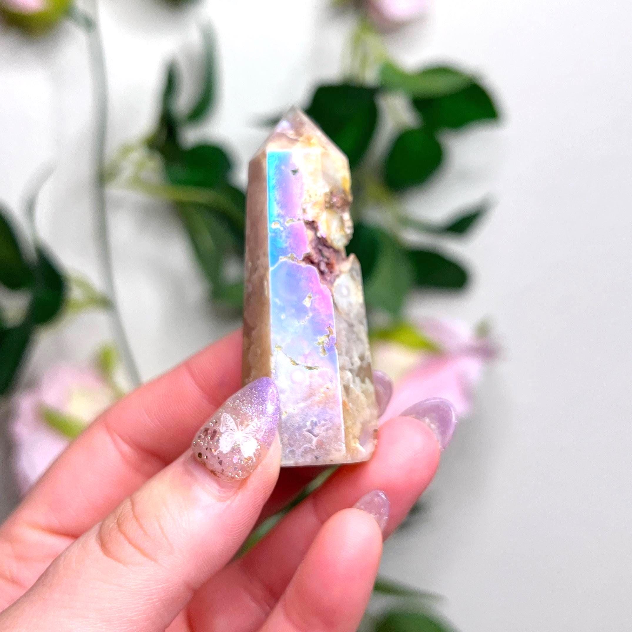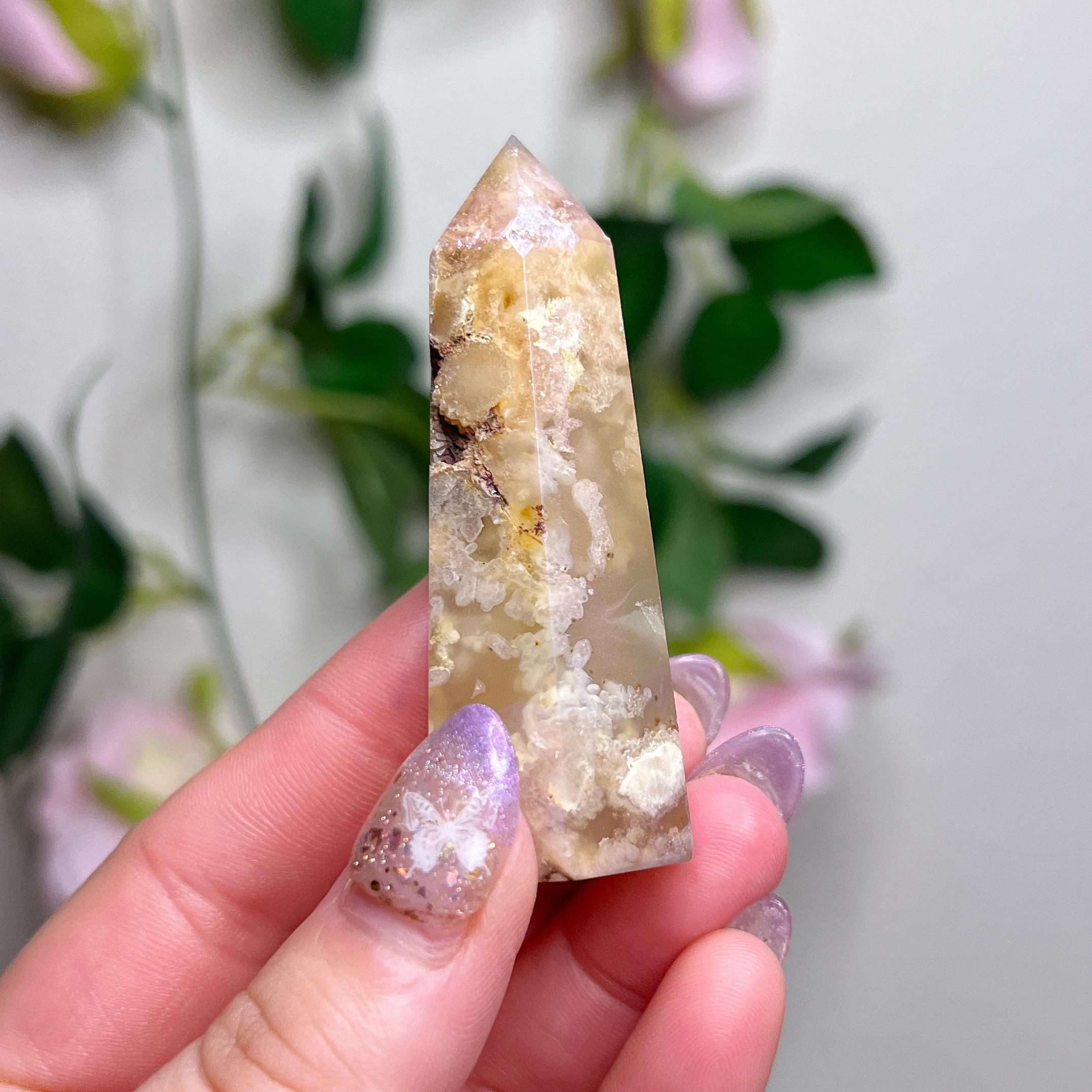 flower agate 🌸 protects from fears and self-doubt - aids in manifesting and nurturing dreams - ignites a passion to pursue dreams and live life to the fullest - promotes spontaneity and joy - removes the feeling of stagnation
