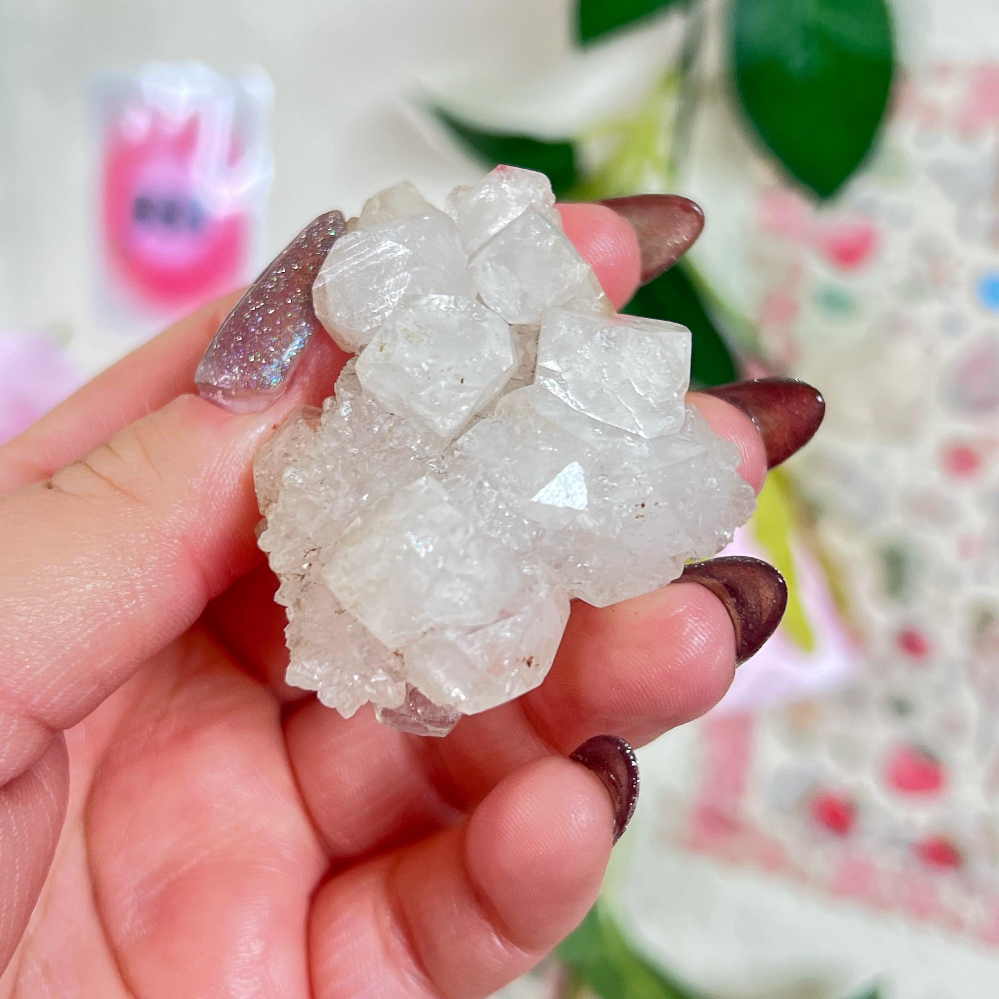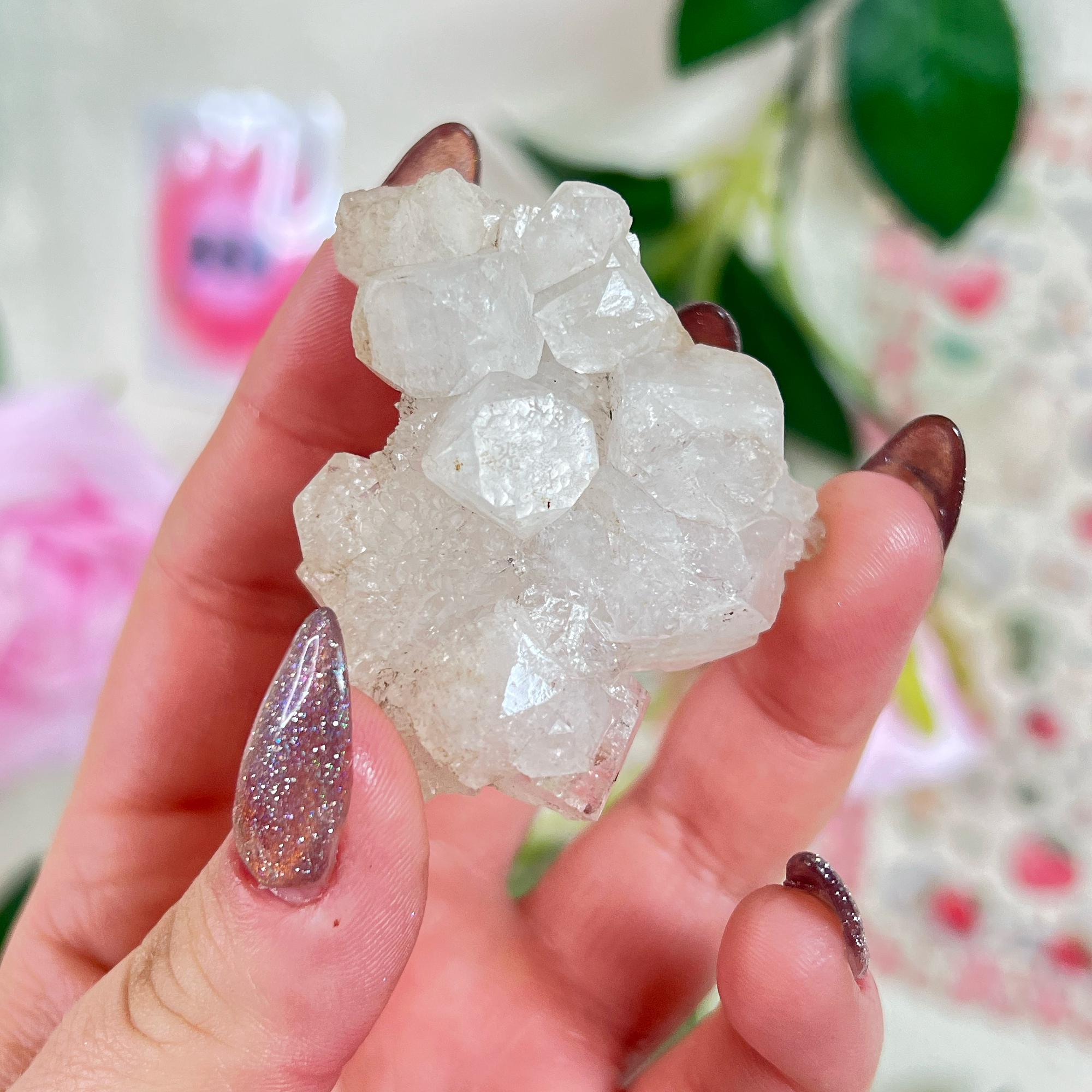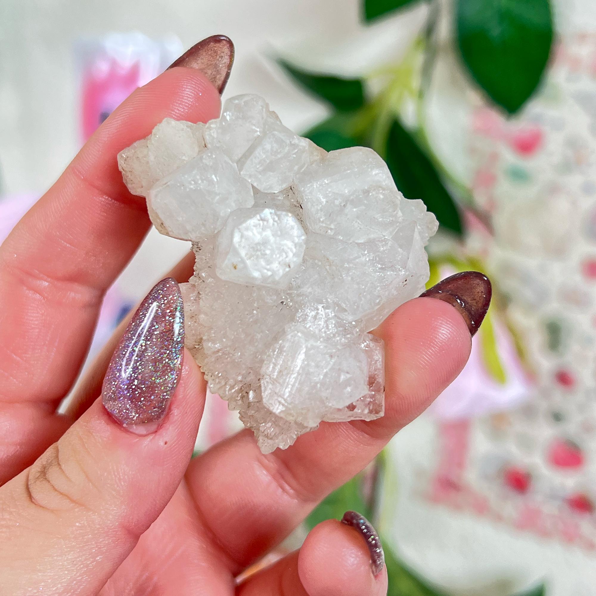 apophyllite 🤍 raises vibration to higher realms - connects to guardian angels and spirit guides - activates third eye and crown chakras - enhances intuitive vision and energy perception - deepens meditation and spiritual awareness - supports astral projection and lucid dreaming - expands consciousness beyond the physical realm - fills spaces with high-frequency energy - assists in transcending ordinary reality