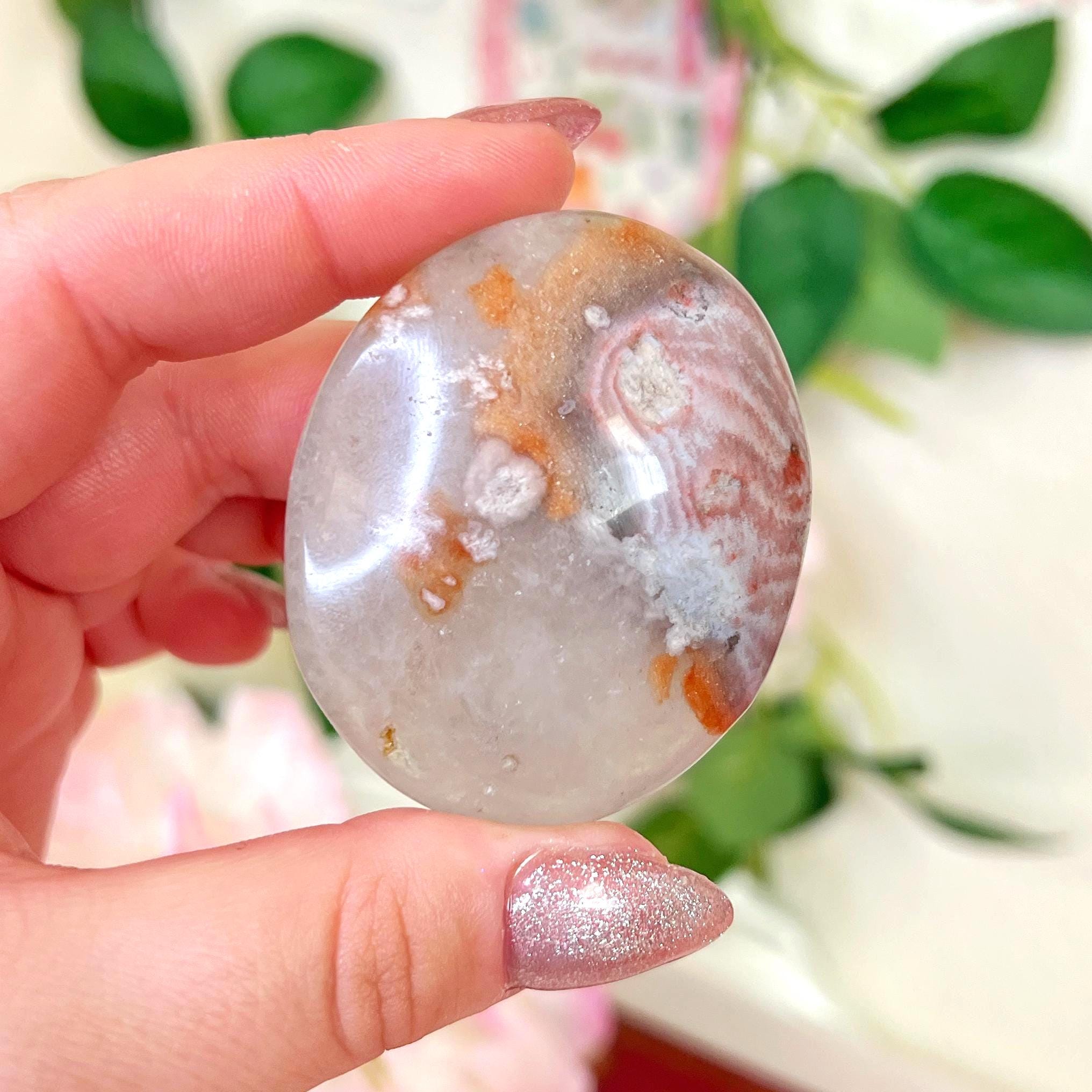flower agate 🌸 protects from fears and self-doubt - aids in manifesting and nurturing dreams - ignites a passion to pursue dreams and live life to the fullest - promotes spontaneity and joy - removes the feeling of stagnation