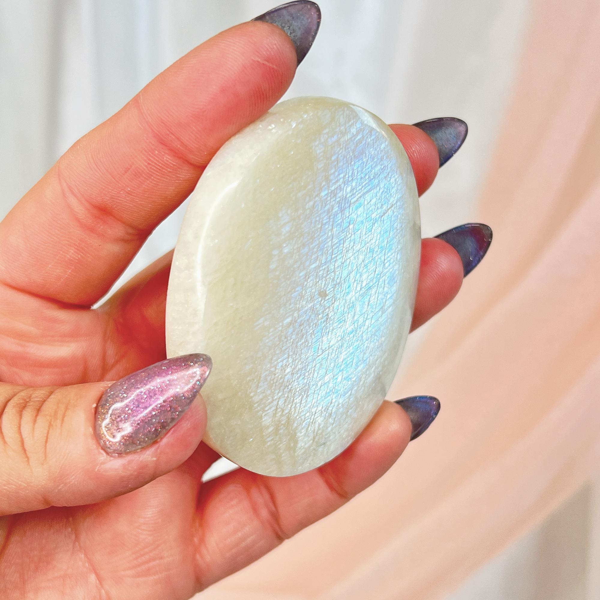 moonstone 🤍🤍 represents tenderness - brings lovers closer together - promotes emotional openness to new experiences - stabilizes emotions - promotes inspiration, success, and good fortune in love and business matters