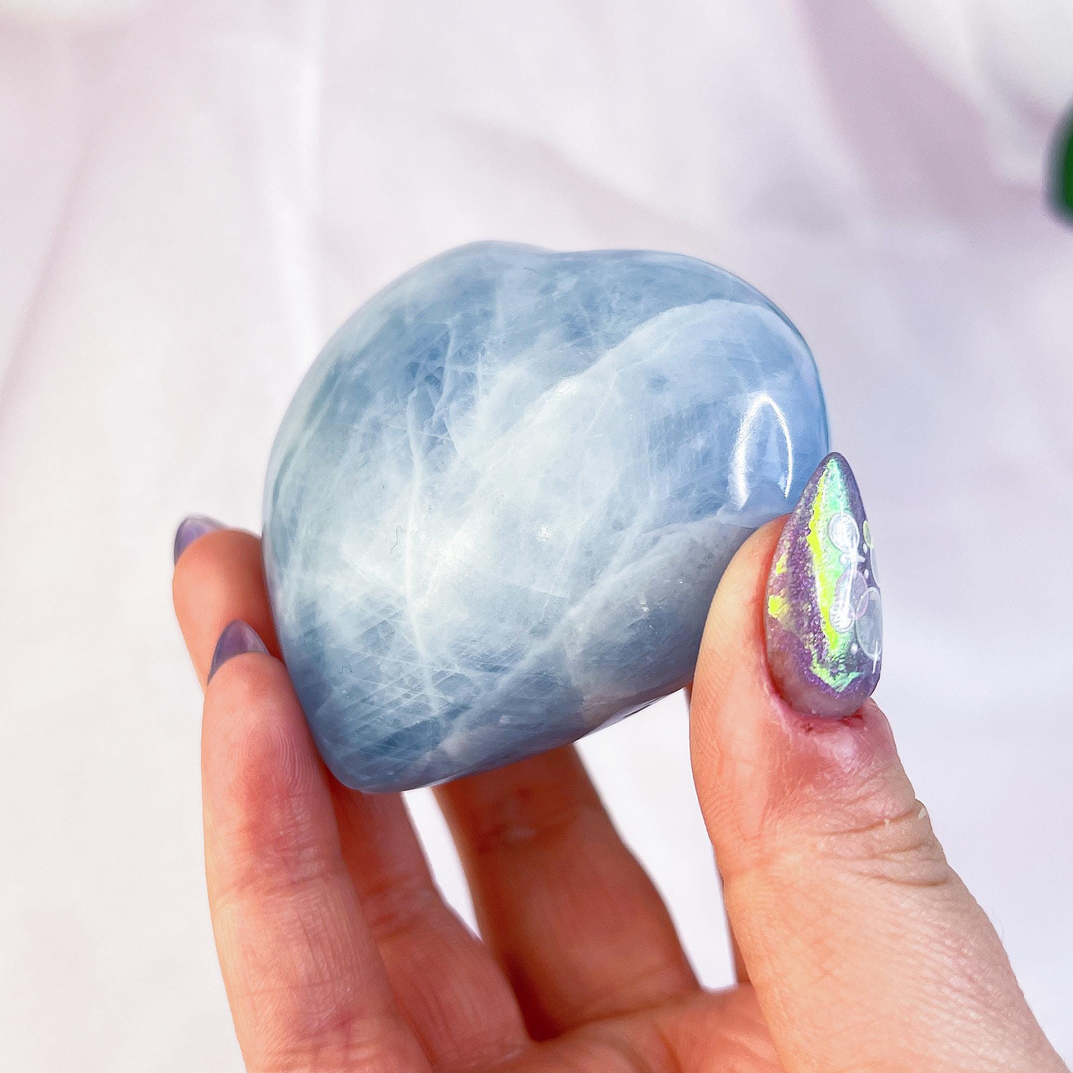 celestite 🫐 improves spirituality and spiritual awareness - dispels fear, anger, stress, and anxiety - brings tranquility, harmony, mental clarity, inner peace, and balance - helps to fall and stay asleep - prevents nightmares