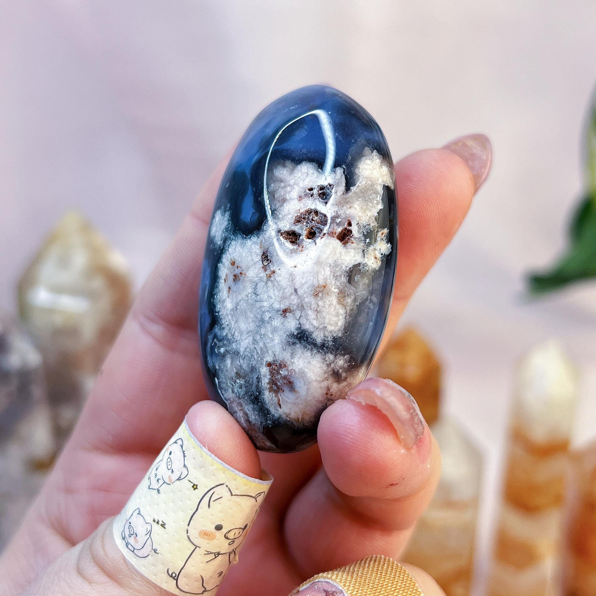 blue flower agate 🩵 emotional healing - soothe emotional distress and promote inner peace - encourages self-acceptance and self-confidence - enhances mental clarity and focus to help us communicate clearly - helps to find your voice and express yourself